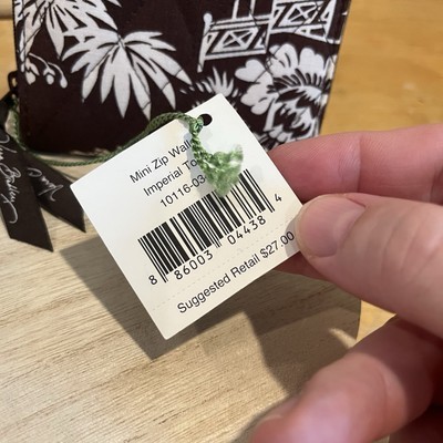Vera Bradley Mini Zip Wallet Imperial Toile Zip Around Brown White New With Tags