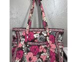 Vera Bradley Quilted Floral Tote Bag Pink Brown White Shoulder Bag Large