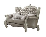 - Versailles 68" Loveseat w/4 Pillows, Vintage Gray Faux Leather & Bone White