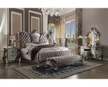 The Versailles collection harmonizes traditional details with functional design to accommodate today's styles. This bedroom collection features antique platinum veneers, nailhead trim accents, button tufted headboard/footboard , padded side rails, and hand-carved style wood drawer overlays throughout all case pieces. The ample storage case pieces, beveled mirror, Felt-Lined drawers, and antique platinum finish hardware make this set truly elegant and will be a great addition.