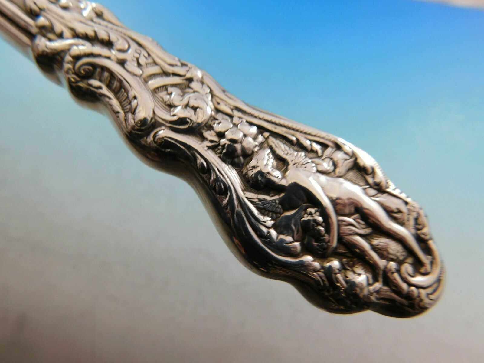 Beautiful sterling silver Asparagus Server measuring 9 1/2" in pattern Versailles by Gorham. This piece features a cherub at the end of the handle within foliage, which leads to the hooded, all-sterling, plain serving area. It is not monogrammed and is in excellent condition.