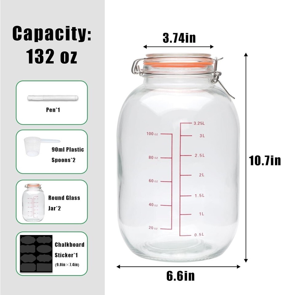 Versatile 1-Gallon Airtight Glass Jars with Labels Scoops for Dry Goods ? ? ? ? ? ? ? ? ? ? ? ? ? ? ? ? ? ? Versatile 1-Gallon Airtight Glass Jars with Labels Scoops Premium Quality and Functionality High-Quality Material: Crafted from thick, clear glass, these jars offer durability while enhancing the aesthetic appeal of any kitchen or storage space. Convenient Labels Scoops: Each set includes labels and scoops, making it exceptionally easy to categorize, identify, and access your dry goods, saving you precious time and effort. Dual Measurement Marks: Equipped with both ounces (oz) and liters (L) measurement marks, these jars allow for precise storage and measurement, ensuring you can follow recipes accurately or track quantities effortlessly. Must-Have Kitchen Essential: Perfect for keeping flour, sugar, rice, pasta, baking soda, beans, cereal, and more fresh and easily accessible, these jars ensure organization in your kitchen. Multiple Storage Solutions: With a generous 1-gallon capacity, they are ideal not only for dry goods but also for creating sun tea or storing fermented foods, adding versatility to your storage needs. Hinged Lid with Secure Seal: Designed with a food-safe rubber gasket, the hinged lid provides a reliable seal that preserves freshness, protecting your ingredients from air and moisture. Transform Your Storage Experience Wouldn't it be wonderful to keep your kitchen organized, stylish, and efficient? Our Versatile 1-Gallon Airtight Glass Jars are the answer to your storage challenges. Their durable, elegant design accommodates a variety of items while the included labels and scoops streamline your cooking process. Embrace the ease and efficiency these jars provide?schedule your purchase today, and elevate your kitchen organization to a new level! Shipping Free Fast Shipping - We offer free shipping to most of the USA with a normal delivery time of 3-7 days. However, due to the current situation, additional delivery time (up to 3 weeks) may be required for some items. Alternative Carriers - We may use alternative carriers (e.g. USPS, FedEx, UPS, etc.) to ensure your package arrives safely and on time. Due to the use of multiple carriers, we are unable to provide a tracking number automatically. Handling Time - Orders are processed and shipped within 1-2 business days of receiving cleared payment. Shipping Restrictions - Shipping to Alaska, Hawaii, Puerto Rico, Guam, and other US territories may incur shipping charges or delivery restrictions. Please contact us before ordering, or your order can be refunded/cancelled. State Restrictions - There may be restrictions based on your state of purchase. For example, certain items may not be shipped to California due to state regulations. Contact for Tracking Updates - If you require tracking updates or have any concerns about the delivery of your order, please feel free to contact us, and we will be happy to assist you. Return 30-Day Hassle-Free Returns - We want you to be completely satisfied with your purchase. If you are not, you can return the item within 30 days of receiving it for a full refund or exchange. Easy Return Process - To start a return, simply contact us and we will provide you with a prepaid return shipping label and detailed instructions. Restocking Fee - There are no restocking fees for returns. However, the buyer is responsible for return shipping costs if the return is not due to a seller's error. Refund Processing Time - Refunds will be processed within 5 business days of receiving the returned item in its original condition. Payment We accept all major credit cards, PayPal, and Apple Pay for your convenience. Your payment information is secure and encrypted to ensure a safe and seamless transaction. Please complete your payment within 3 days of purchase to avoid any delays in shipping. Feedback Your feedback is extremely important to us. We strive to provide the best products and customer service possible. If you are satisfied with your purchase, please take a moment to leave us a positive review. If you have any concerns or issues with your order, please contact us before leaving negative feedback. We are committed to resolving any problems and ensuring your satisfaction. Contact Us If you have any questions or concerns, please feel free to reach out to our customer support team. You can contact us through the messaging system. We are available Monday to Friday, 9:00 am to 5:00 pm EST, and we will do our best to respond to your inquiry within 24 hours. Buy it now and enjoy a pleasant shopping experience! UPC: Not Set Unit Quantity: 1 Material: Glass,Plastic,Rubber Features: Airtight,Durable,Dual Measurement Marks,With Scoop,With Labels Theme: Glass Storage Jars Character: Scoop Department: Kids,Teens,Unisex Baby Toddler,Adults Brand: Unbranded Item Height: Glass Storage Jars Color: Clear Type: Storage Jar Number of Items in Set: 2 Style: Modern Shape: Round MPN: Not Set Capacity: 1 gallon Country/Region of Manufacture: Not Set Pattern: Not Set Character Family: Not Set Wood Tone: Not Set Item Diameter: 4 in Item Depth: 2 in Item Weight: 6.93 lbs Model: Not Set Unit Type: Unit Personalize: Not Set