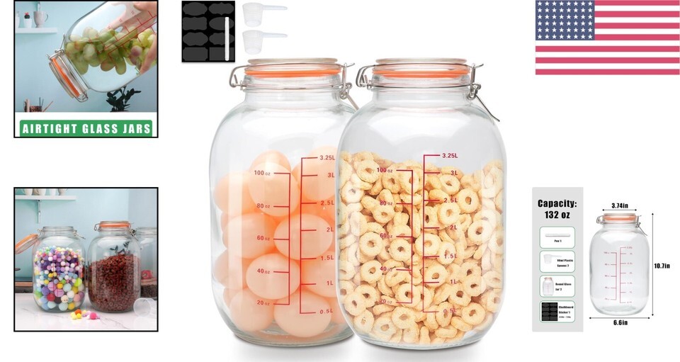 Primary image for Versatile 1-Gallon Airtight Glass Jars with Labels & Scoops for Dry Goods