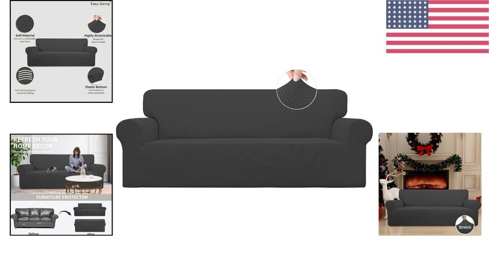 - Versatile 1-Piece Couch Protector - Stretchy Dark Gray Cover for Kids and Pets