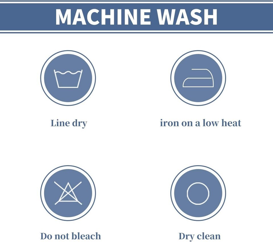 Machine Wash, Do Not Bleach, Do Not Iron |