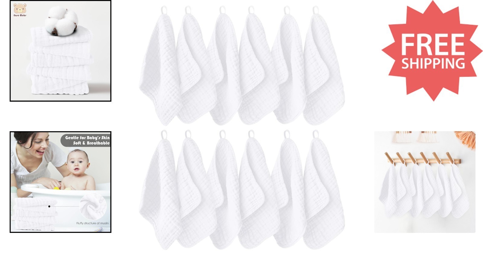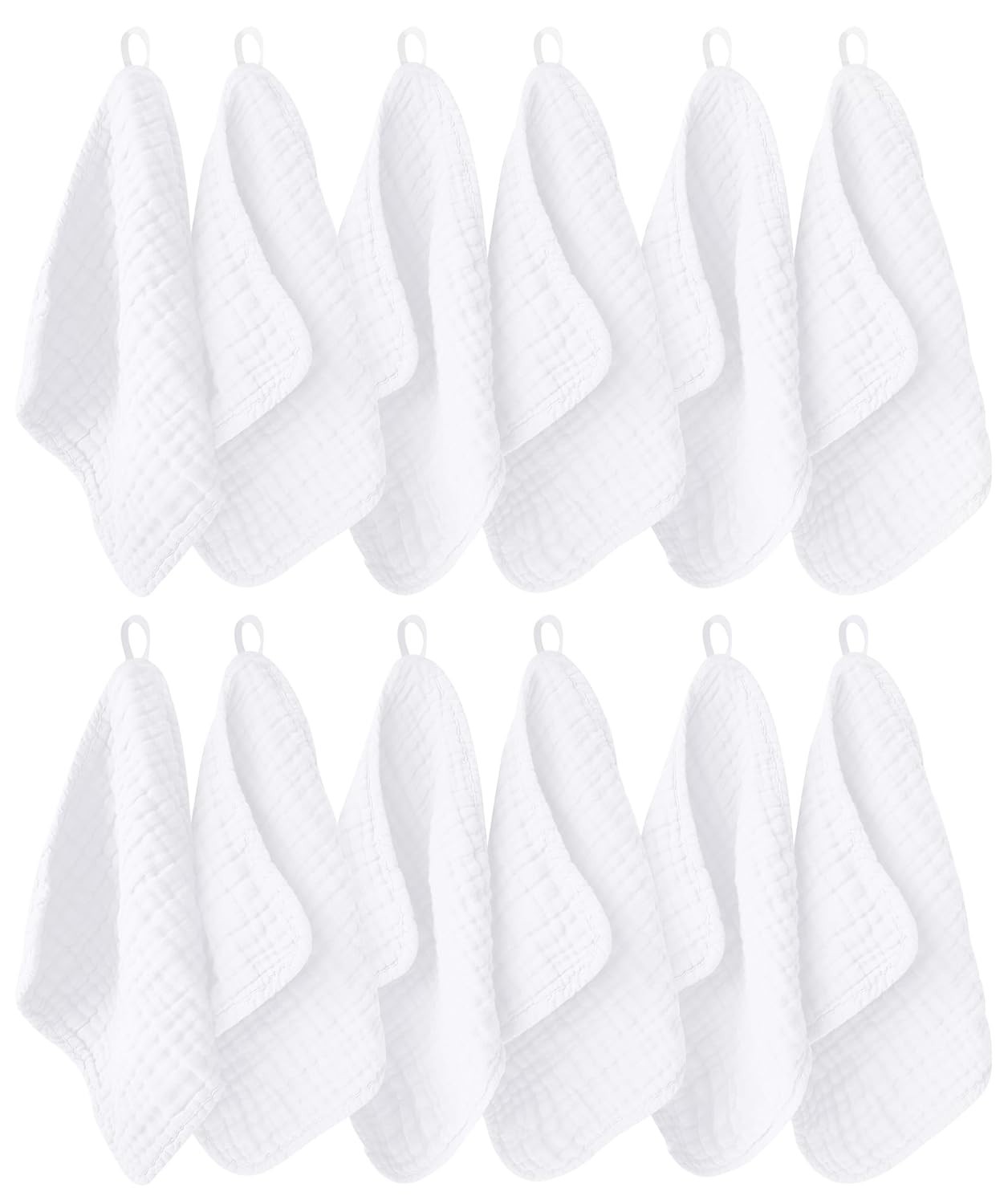 - Versatile 12"x12" Muslin Baby Washcloths - 12 Pack, Perfect for Newborn Care