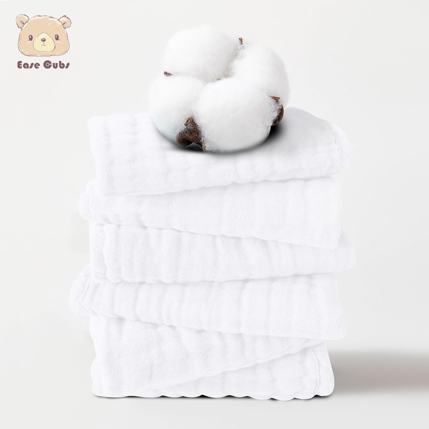 Elevate your baby care routine with our Ease Cubs 12 Pack Muslin Baby Washcloths, crafted from 100% cotton for maximum softness and gentleness. Each generously sized 12"x12" cloth offers ample coverage, perfect for bath time, diaper changes, and beyond. Featuring vibrant, stylish colors, these versatile washcloths serve as burp cloths, nursing covers, or face towels, making them ideal for on-the-go use. Designed for durability, they maintain plush softness through frequent washes. Experience unparalleled comfort, absorbency, and practicality with our luxurious baby washcloths.