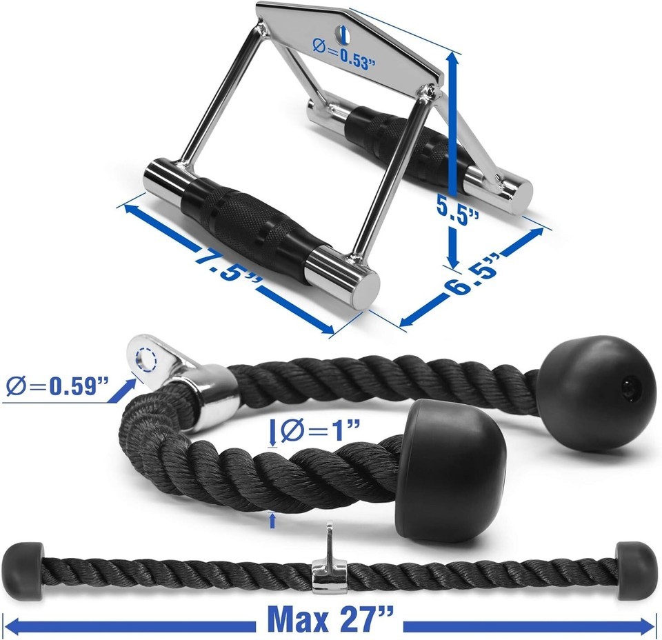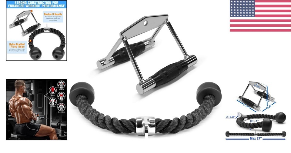 - Versatile 2-in-1 Cable Machine Attachment Set: Tricep Rope & Double D Handle