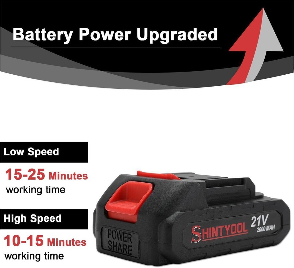 Power Specs: With a powerful voltage of 21V and a capacity of 2000Ah, this lithium-ion battery is crafted from 5 quality lithium-ion cells, ensuring stable capacity and output.