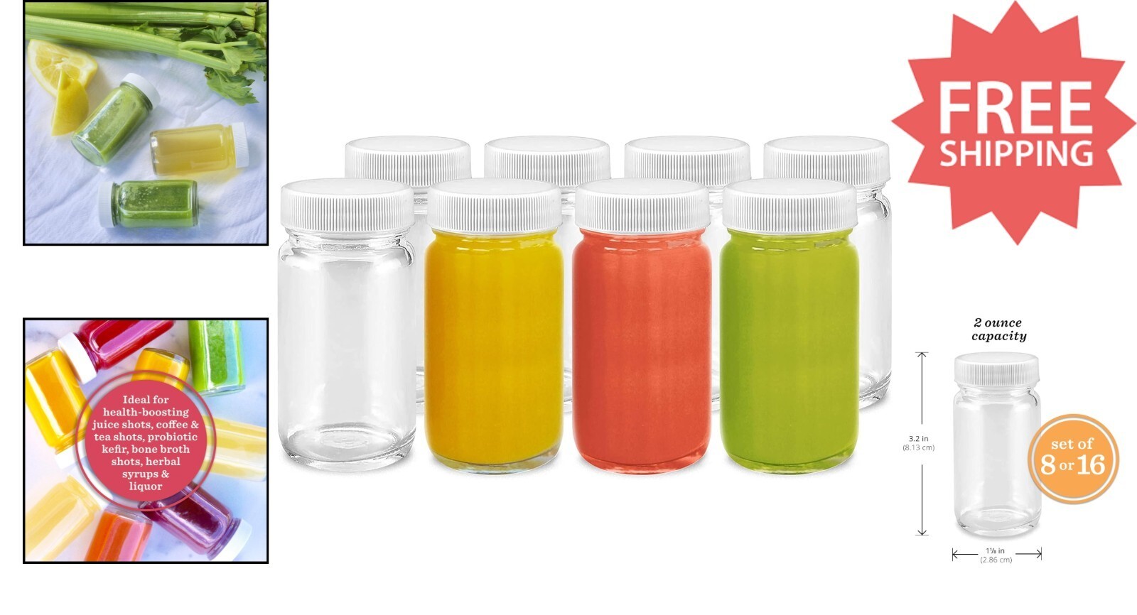Discover our versatile, high-quality glass jars, perfect for your everyday needs. Featuring a thick, crystal-clear design, these jars allow you to easily view contents and ensure cleanliness. The wide-mouth opening facilitates effortless pouring, filling, and cleaning?funnel recommended but not necessary. Airtight, leakproof caps keep your liquids fresh and spill-proof, ideal for on-the-go use or batch storage. Perfect for wellness shots, coffee or herbal drinks, syrups, kefir, broths, or even spices, dressings, and crafts. Reusable and dishwasher safe, these chemical-free jars are a health-conscious choice for of reliable use. Includes an 8 or 16 pack with white lids, each holding 2 ounces, with dimensions of 3.2" high and a 1.6" base diameter. To ensure fast and reliable delivery, we work with multiple fulfillment partners and suppliers. Depending on availability and location, your order may ship from different warehouses or arrive in packaging that varies from item to item. Tracking details are typically provided shortly after shipment, and customer satisfaction remains our top priority. Please note that due to carrier policies and regional regulations, certain items may not be eligible for delivery to specific states or territories.