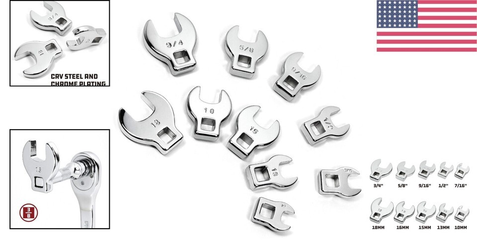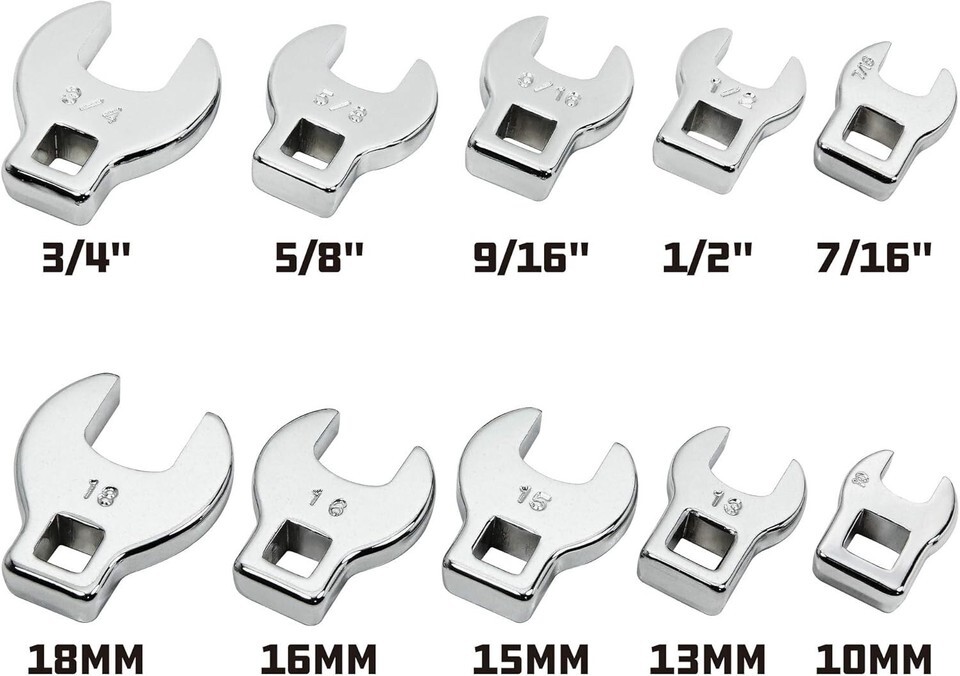 - Versatile 3/8 Inch Drive Wrench Set - 10 Crowfoot Wrenches, Chrome Plated