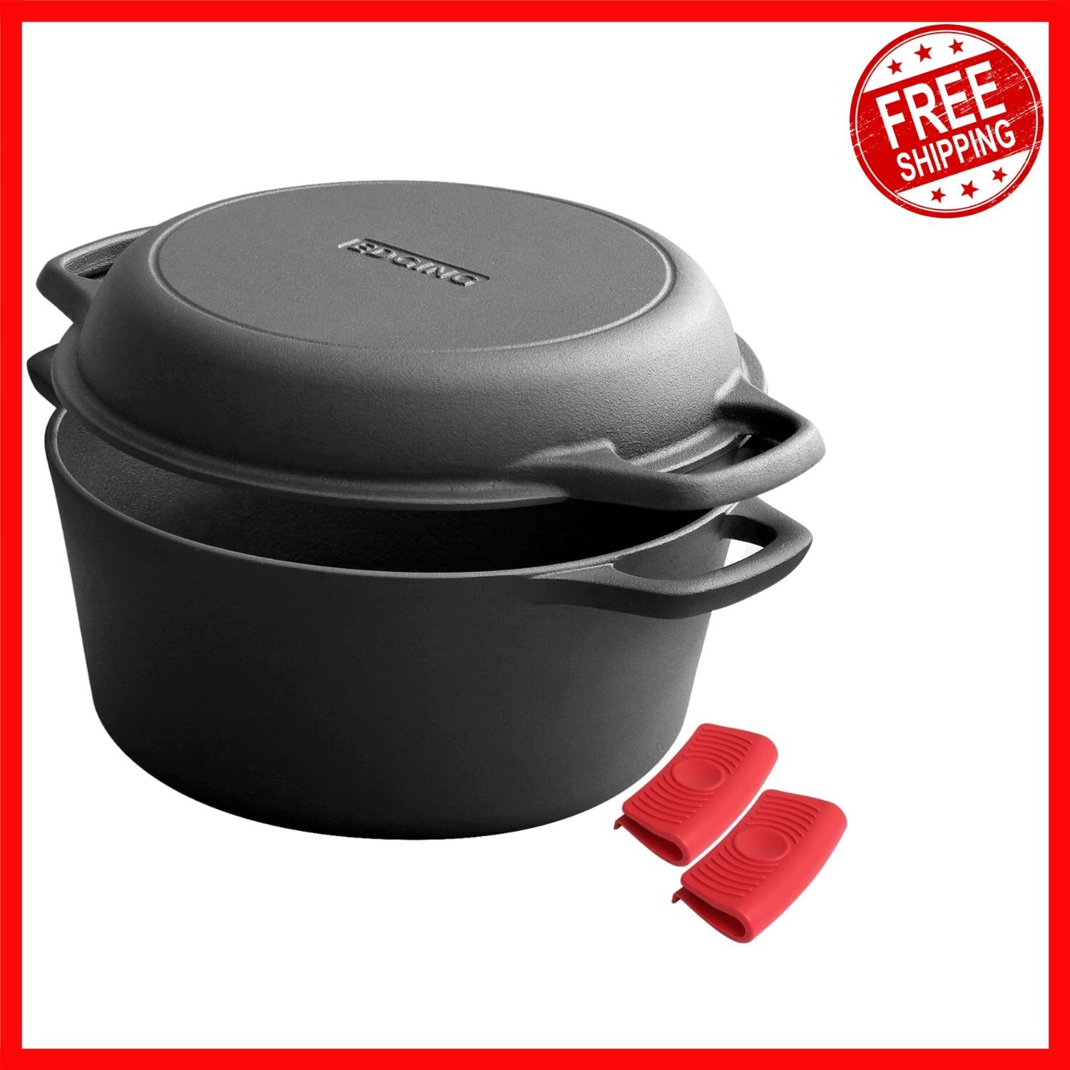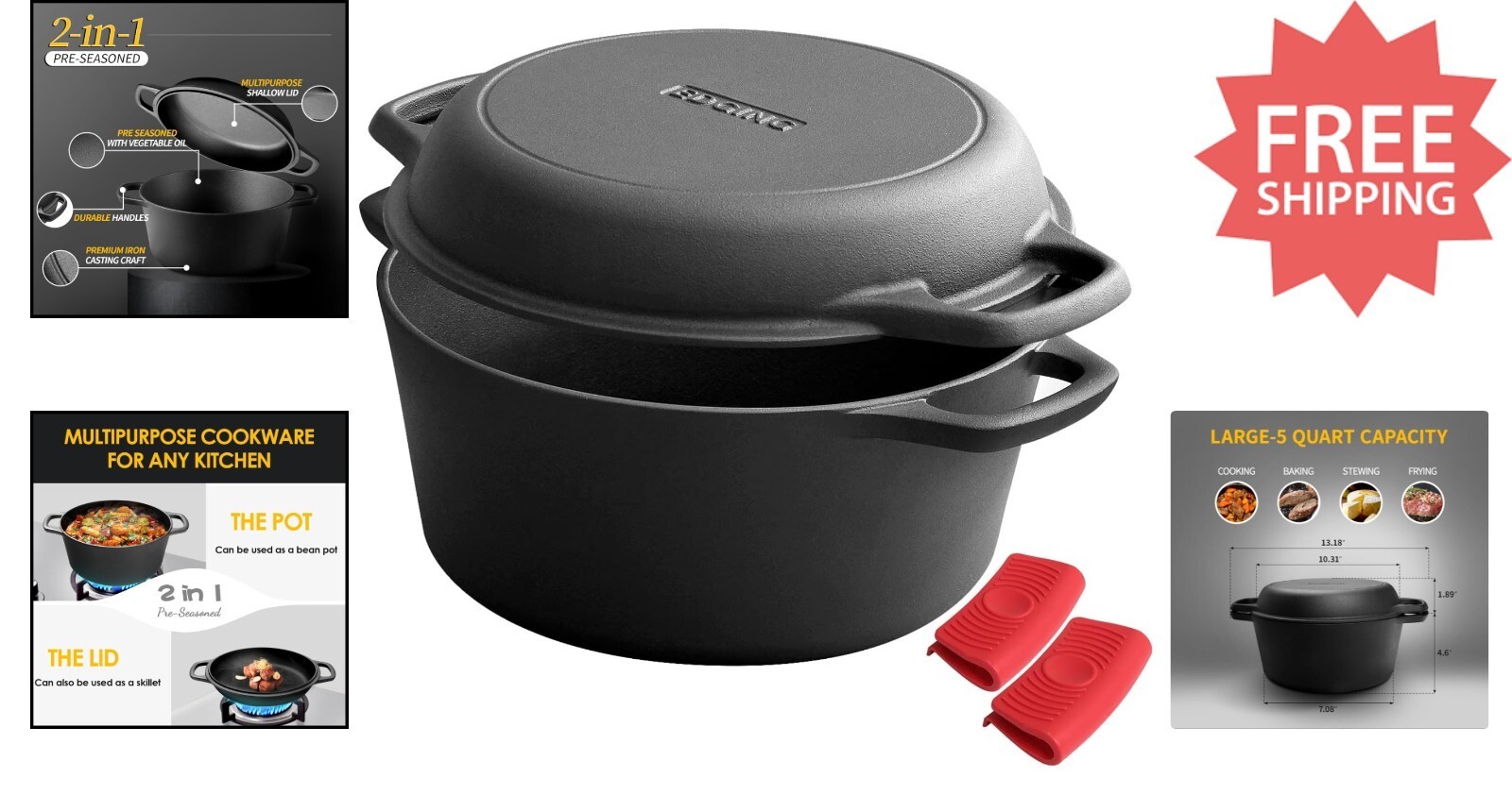 Versatile 5QT Cast Iron Dutch Oven with Skillet Lid - Ideal for Indoor Outdoor