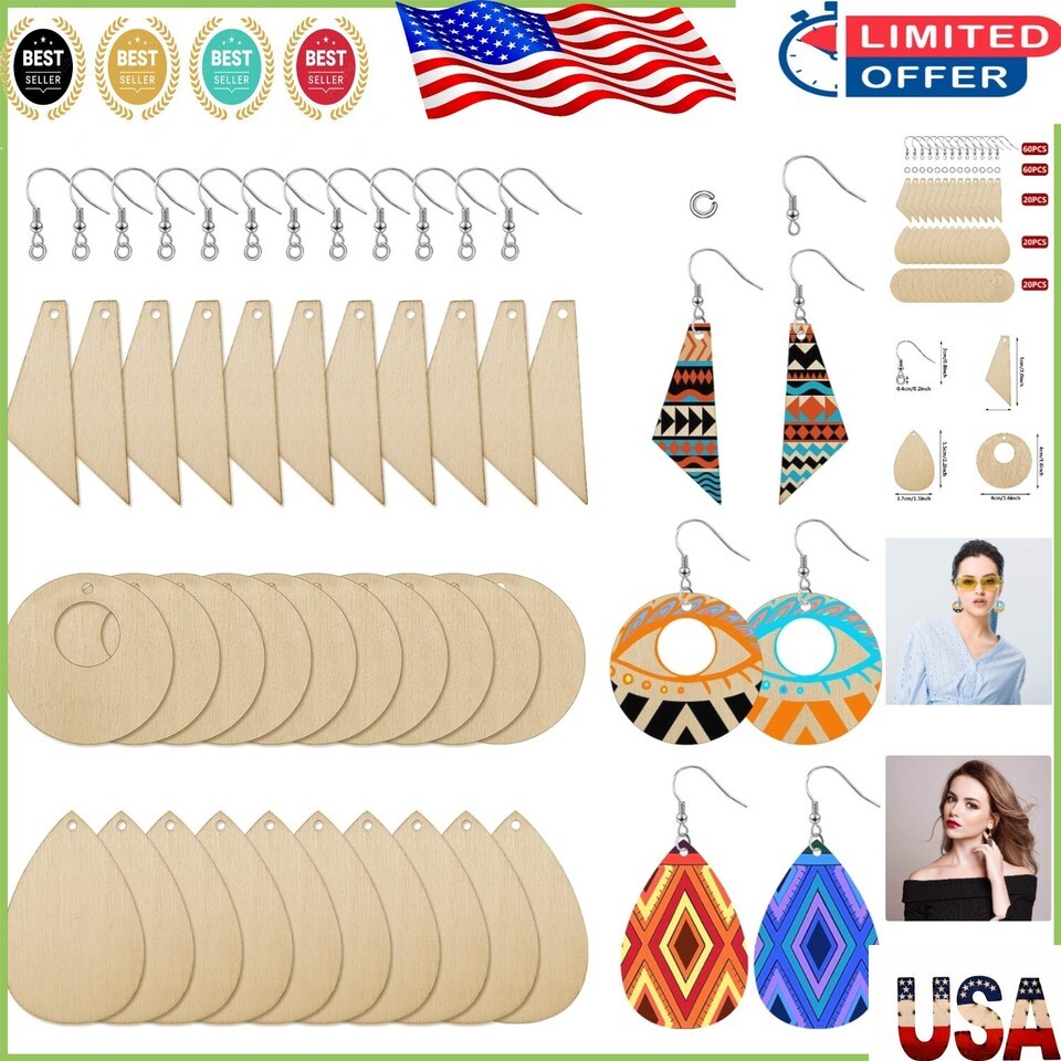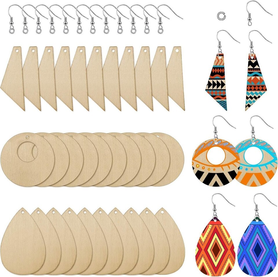 60 pieces of unfinished wood earring pendants in 3 distinct styles.