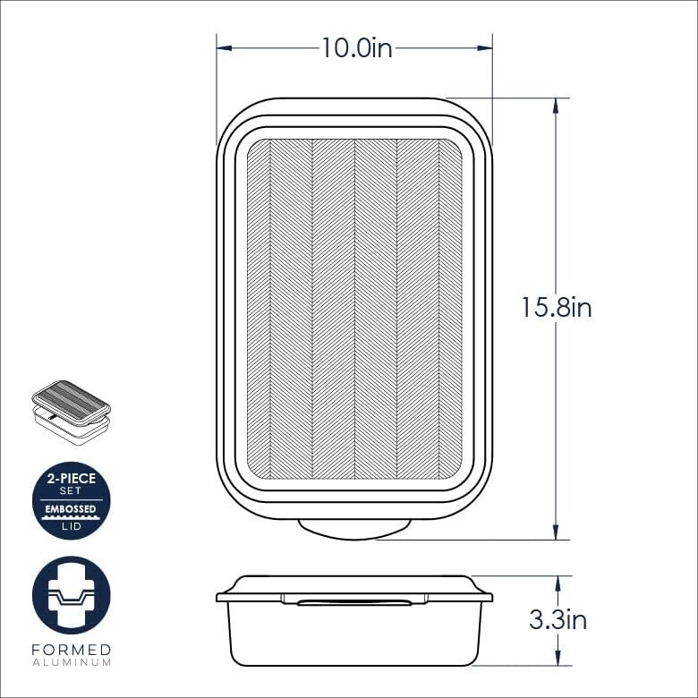 Pan exterior dimensions with lid handle: 15.8 x 10 x 3.3 inches.