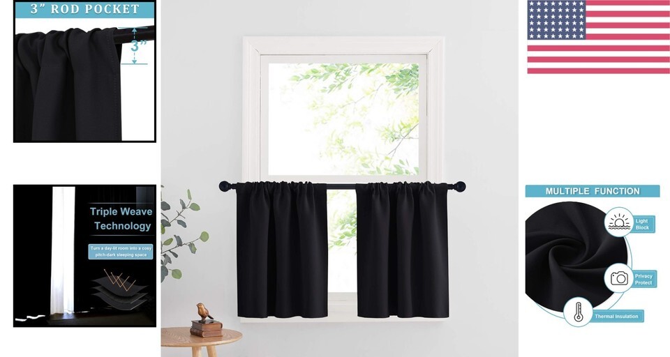 - Versatile Black & Thermal Insulating Curtains, 2 Panels - Protects & Decorates