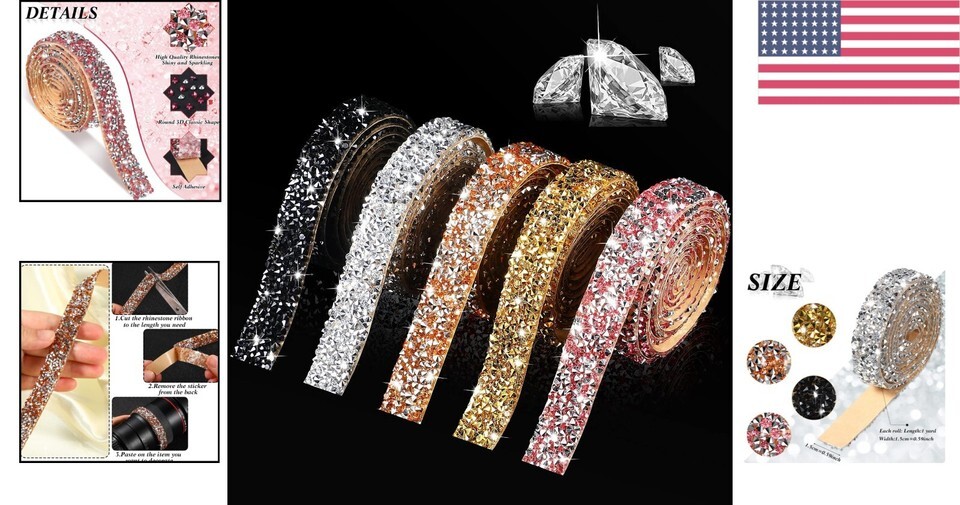 Primary image for Versatile Crystal Rhinestone Bling Ribbon - 150ft Self-Adhesive Decorative Rolls