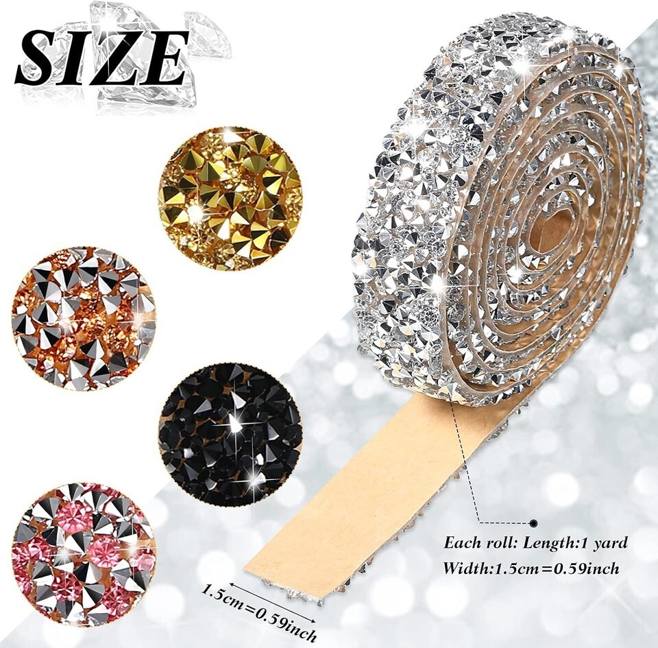 Versatile Crystal Rhinestone Bling Ribbon - 150ft Self-Adhesive Decorative Rolls