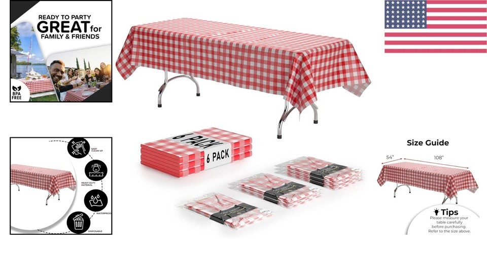 - Versatile Disposable Checkered Table Covers - 6 Pack - Perfect for All Occasions