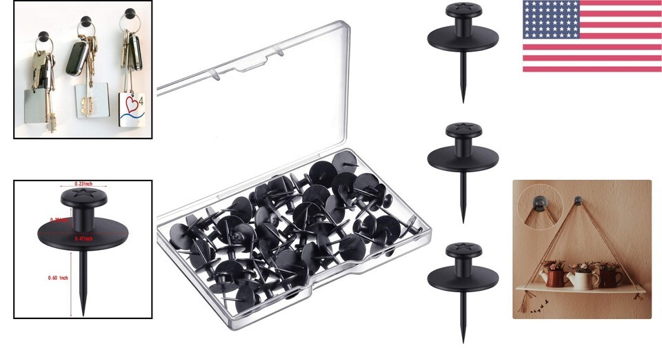 Versatile Double-Headed Picture Hangers - Stylish Black, 20 lbs Limit, 80 Pcs