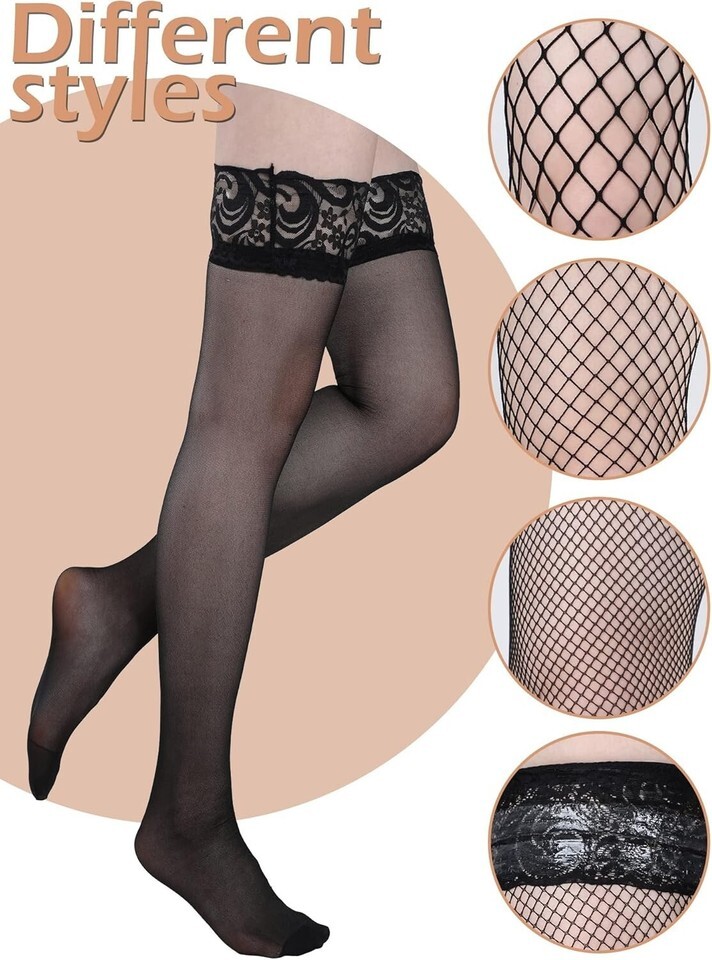 4 Stylish Pairs: Each package comes with four pairs of thigh-high stockings featuring different mesh sizes for versatile styling.