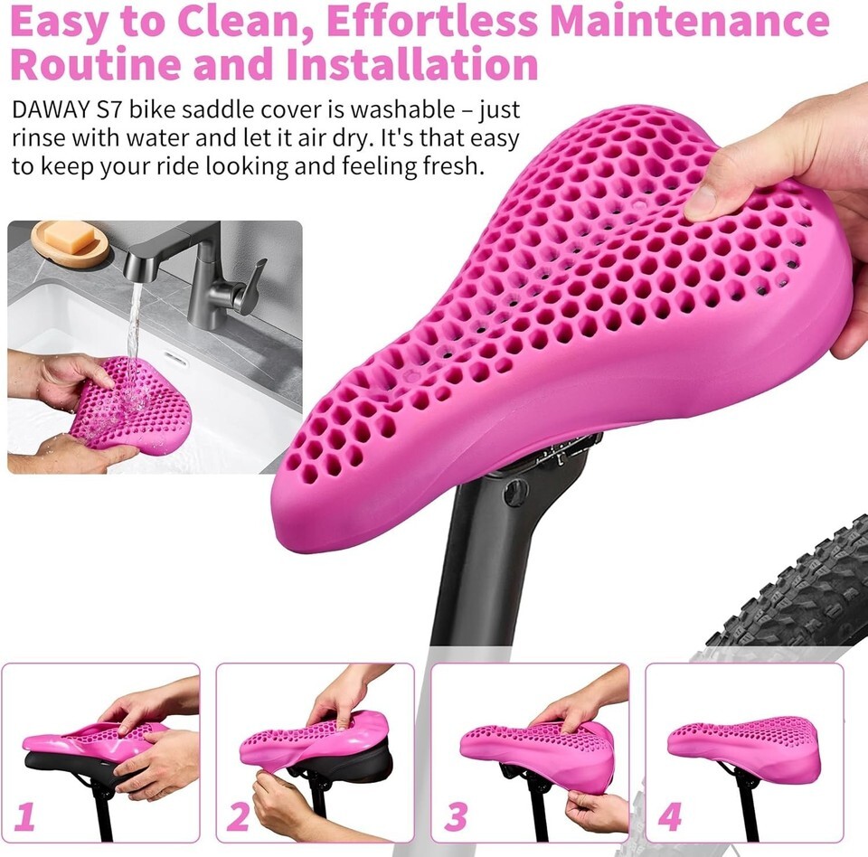 Superior Comfort: Experience ultimate pleasure with our S7 Liquid Silicone Gel Bike Seat Cover. The advanced shock-absorbing honeycomb design alleviates pressure points, eliminating saddle soreness for a smoother ride.