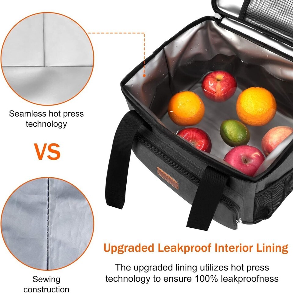 Insulated Leakproof: Made with an extra thick waterproof PEVA liner and 600D eco-friendly Oxford fabric, this lunch bag features built-in 4mm EPE foam insulation to keep your food hot, cold, or fresh for over 6 hours.