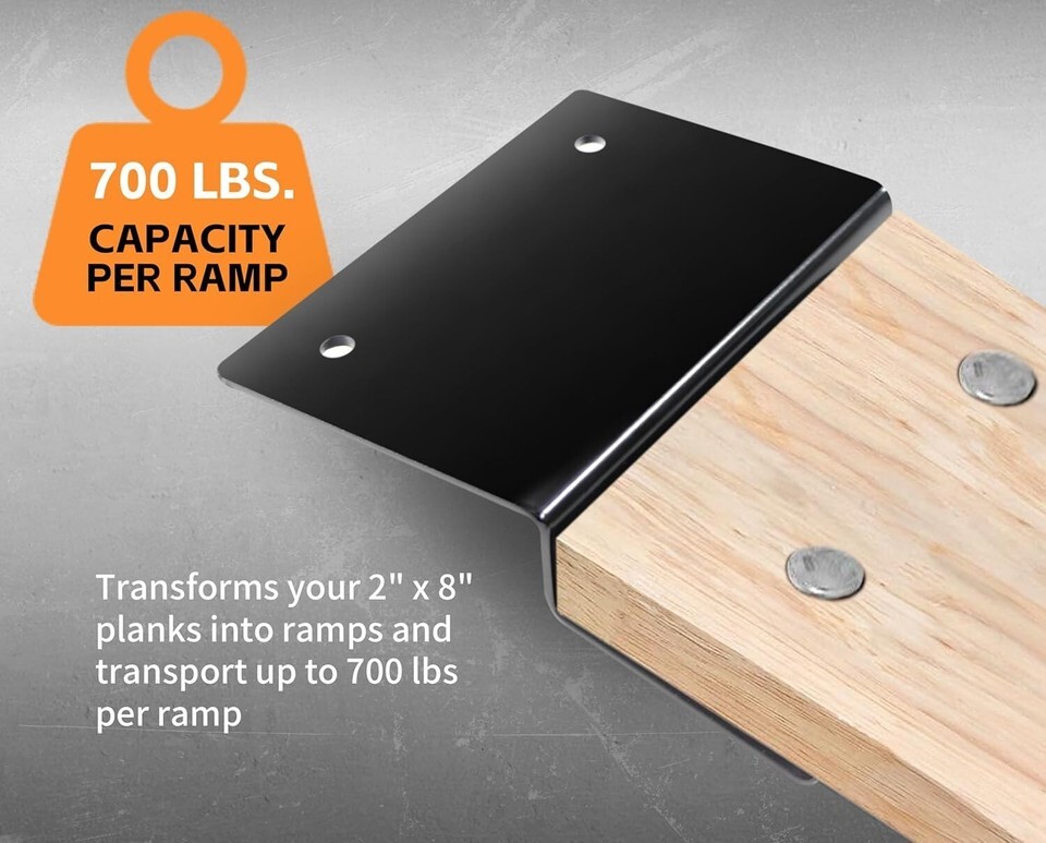 Don't let loading your ATVs, motorcycles, or lawn equipment become a daunting task. With our Versatile Ramp Top Kit, you'll have the tools you need to set up strong, reliable ramps that can support up to 700 lbs per ramp. Engineered for ease of use, this kit conveniently allows you to customize the length of your ramps using your own wood planks, ensuring a precise fit for your loading needs.