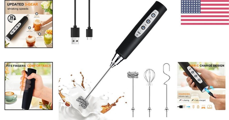 - Versatile Rechargeable Electric Drink Mixer - 3 Heads for Coffee, Matcha & More