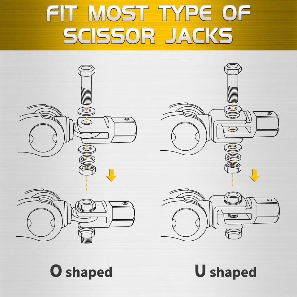 Skip the strenuous manual effort and embrace the ease of using a power tool to handle your scissor jacks with confidence. Order your Scissor Jack Drill Adapter today, and enjoy the perfect blend of practicality and strength!