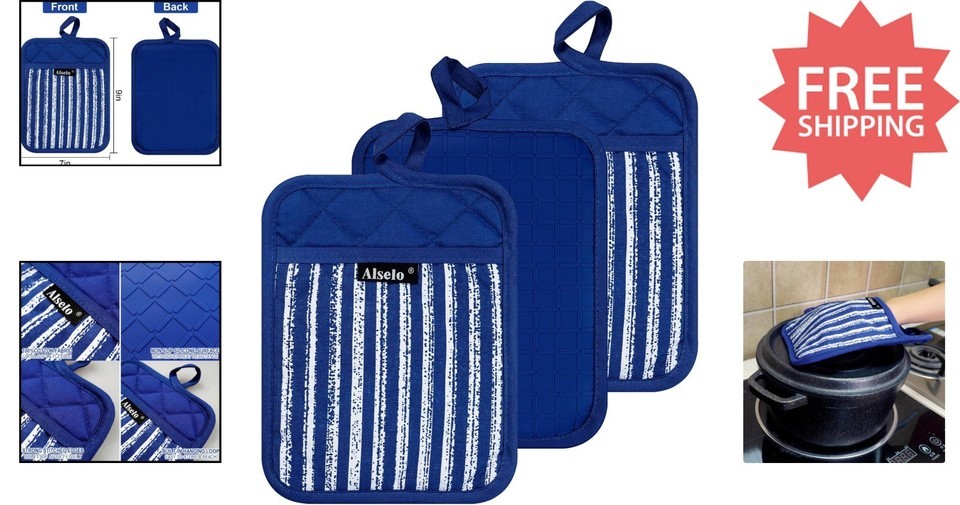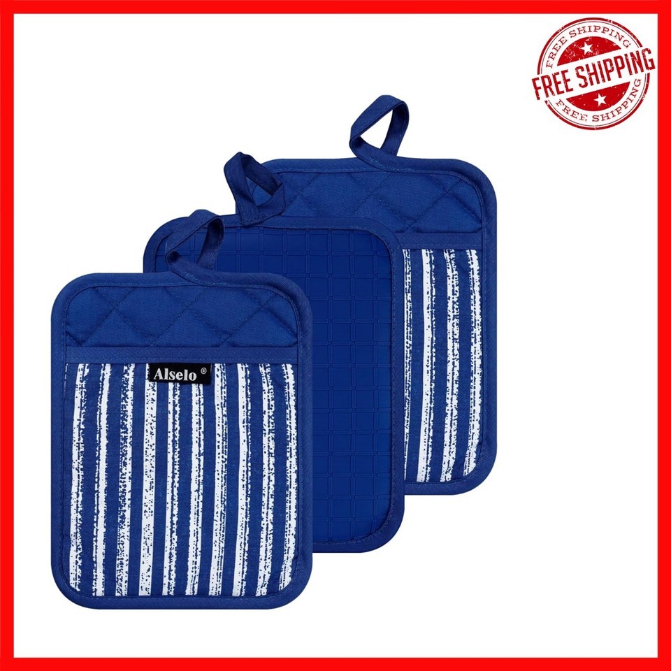Enhance your kitchen with this set of three 7"x 9" rectangle pot holders, crafted in vibrant colors to complement any decor. Made from food-grade, eco-friendly silicone, they withstand temperatures up to 932F and as low as -50F, providing reliable protection from burns when handling hot dishes, baking, grilling, or microwave use. The textured silicone surface offers a non-slip grip, ensuring safety and precision during cooking. These multifunctional hot pads double as trivets and are easy to clean?simply hand wash and hang for storage. An essential for cooks and bakers seeking durability and style. To ensure fast and reliable delivery, we work with multiple fulfillment partners and suppliers. Depending on availability and location, your order may ship from different warehouses or arrive in packaging that varies from item to item. Tracking details are typically provided shortly after shipment, and customer satisfaction remains our top priority. Please note that due to carrier policies and regional regulations, certain items may not be eligible for delivery to specific states or territories.
