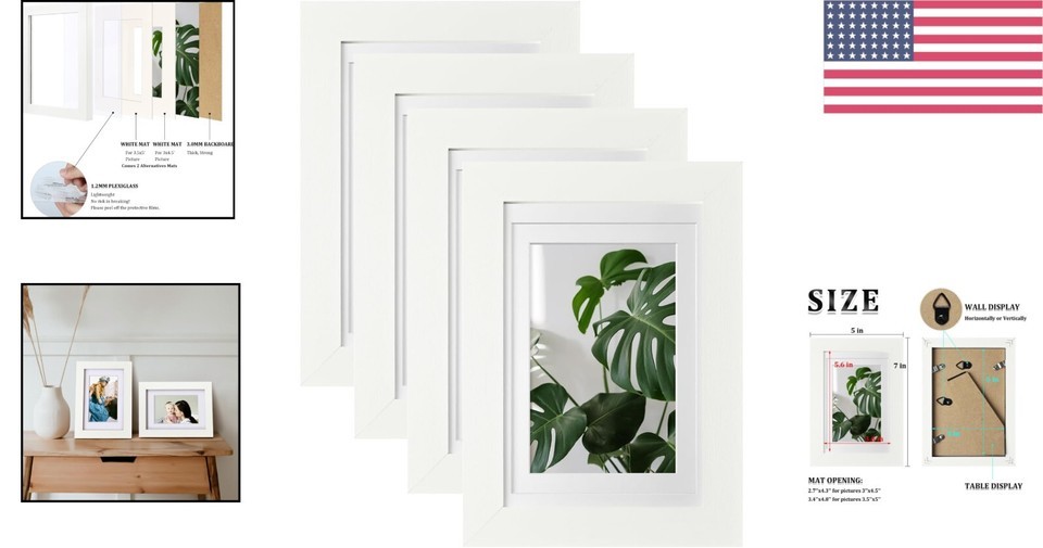 - Versatile Solid Wood 4x6 Picture Frames for Tabletop & Wall Display - 4 Pieces