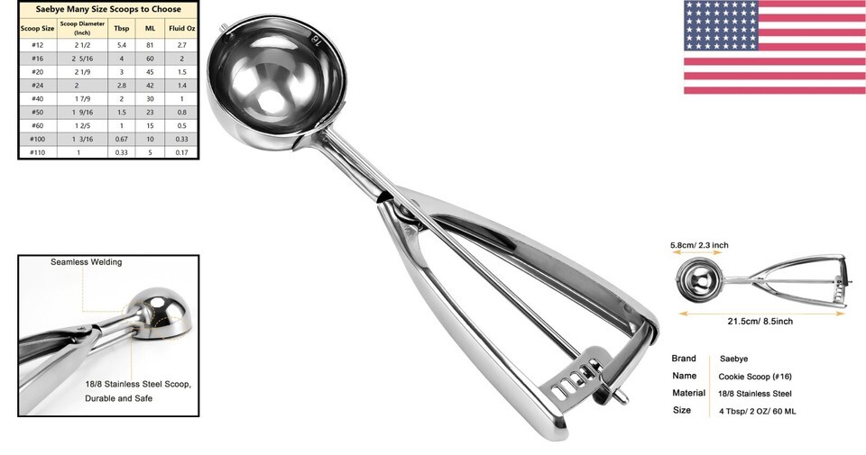 Large 2 oz capacity is perfect for cupcakes, muffins, large cookies, and meatballs.