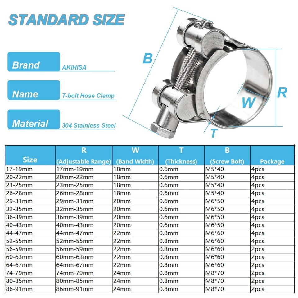 Items Included: Clamps,4pack T-Bolt Hose Clamps