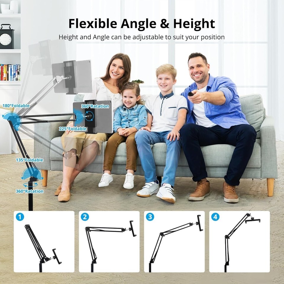Wide Compatibility: Adjustable height ranging from 27.5 to 55 inches, compatible with all tablets and phones between 4.5-12.9 inches and under 1.5lbs.