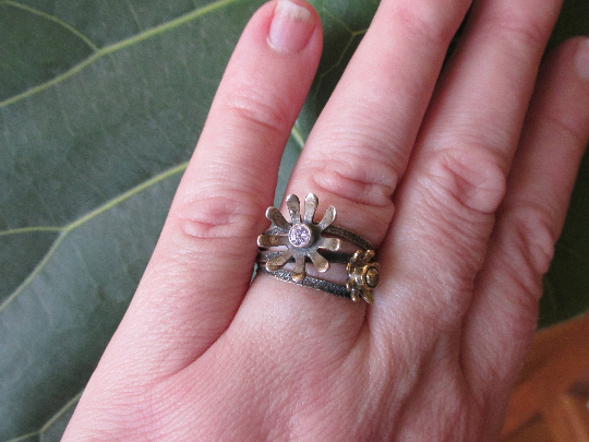 This listing is for "Adorable Kunzite Ring Size 9 or S, 925 Silver" that you in the photos. The stone is 3 mm, and the flower is around 1.3 cm. You will love it :)