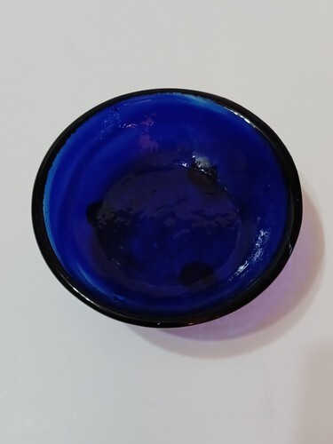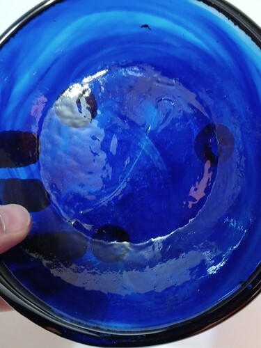 Vetro riciclato vintage. Questo e un ottimo articolo in vetro riciclato. Sembra un oggetto Fire and Light. Non sono sicuro poiche non e firmato. E pesante e spesso. Non ci sono crepe o scheggiature.