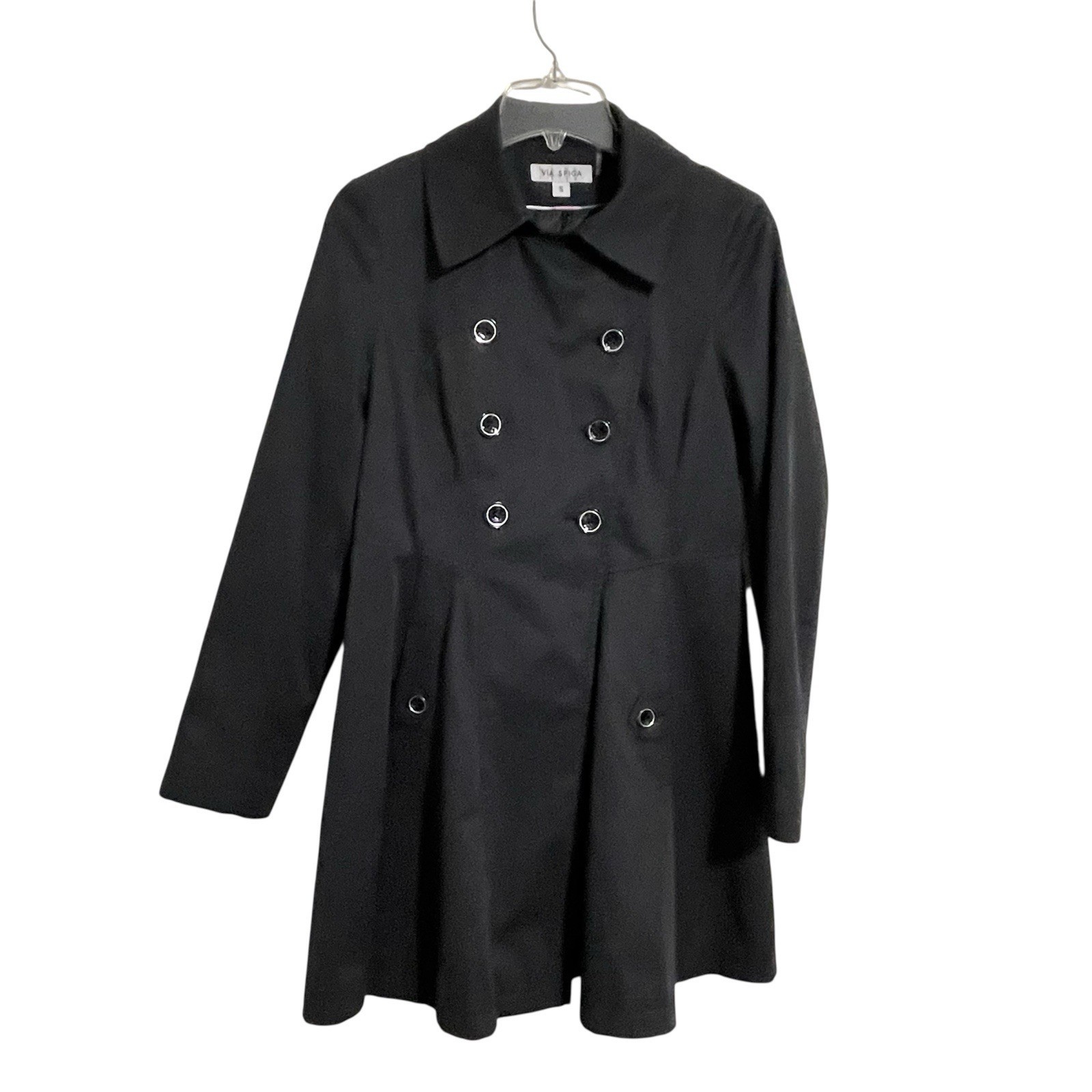 Via Spiga Double Breasted Coat Size S Black Cotton Blend Pleated Classic Fall