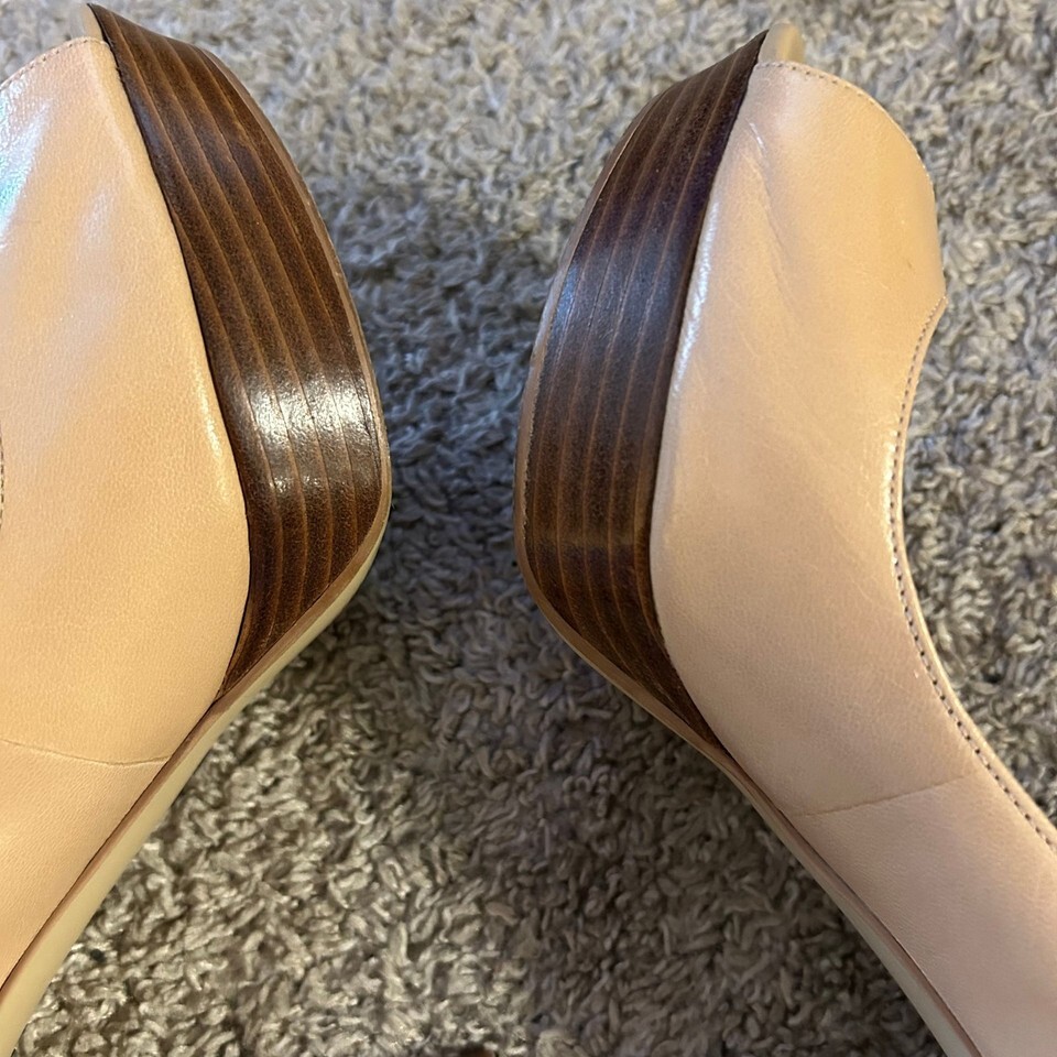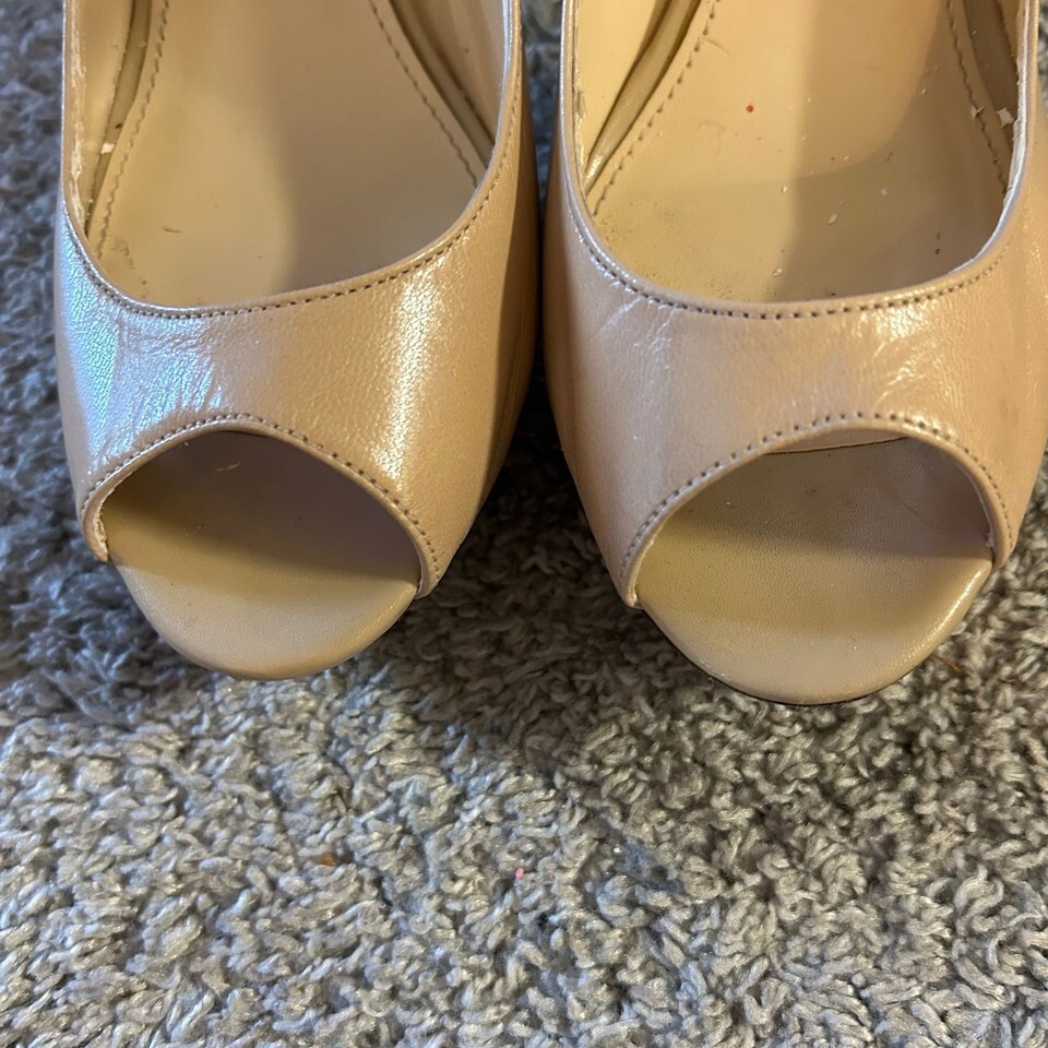 - Via Spiga Nude Patent Leather Peep-Toe Heels