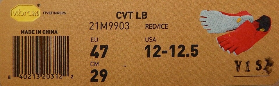 Vibram FiveFingers CVT LB Size US 12-12.5 M EU 47 Men's Hemp Running Shoes Red / Ice 21M9903