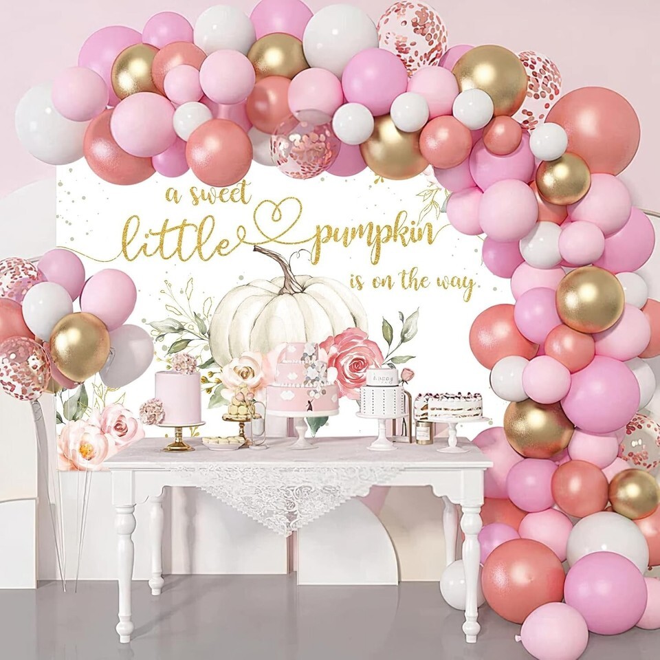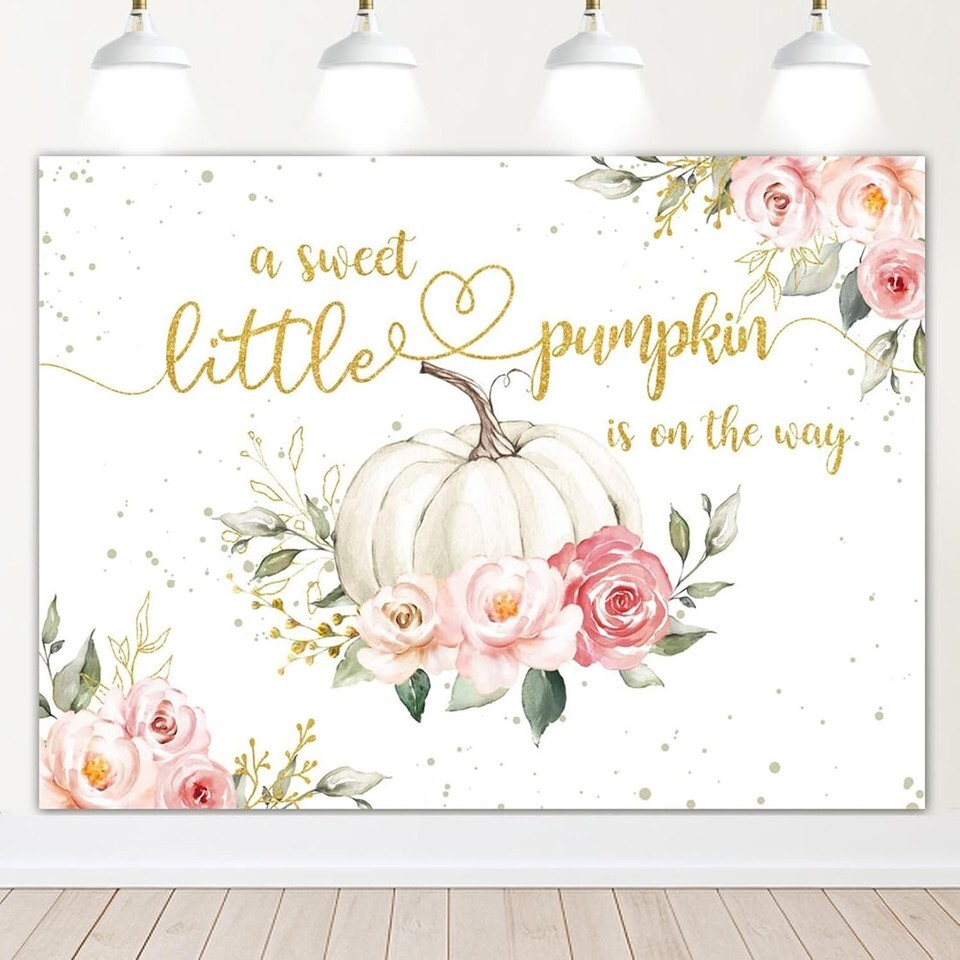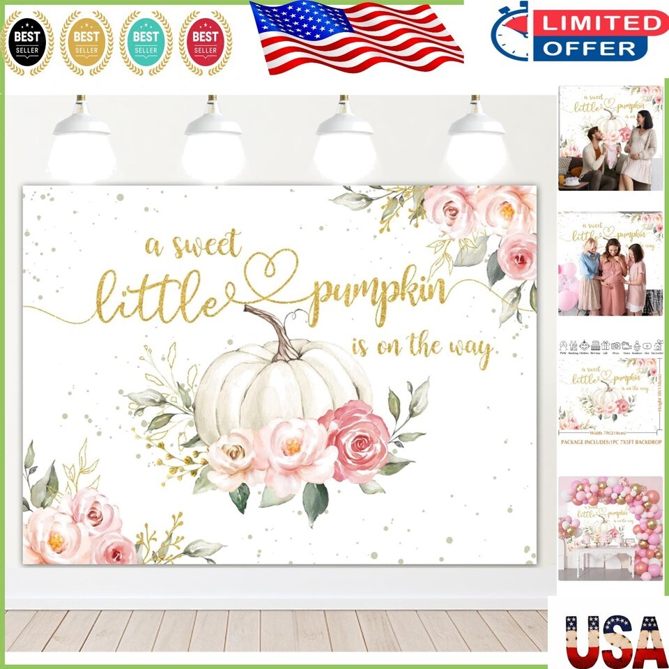 Primary image for Vibrant 7x5ft Pumpkin Baby Shower Backdrop, Eco-Friendly Soft Cotton Decor
