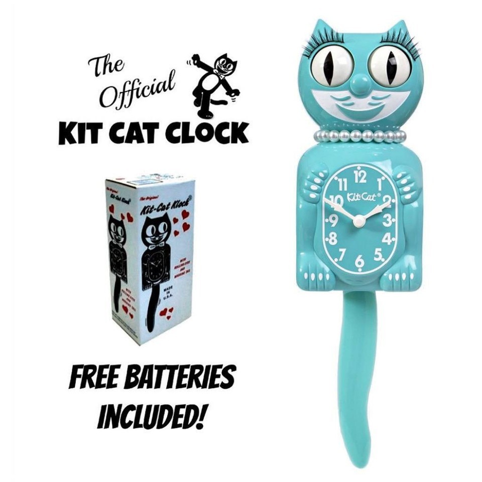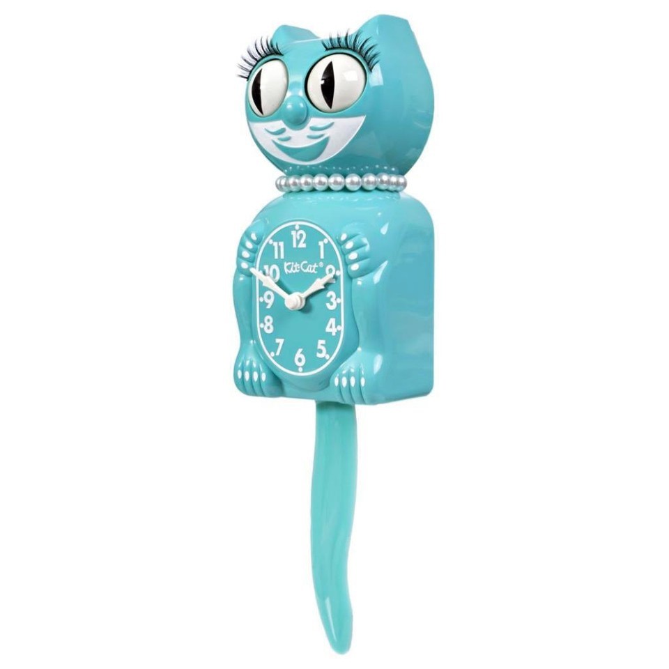 This is the Vibrant Blue Turquoise Lady Kit Cat Clock, released in Fall 2024.