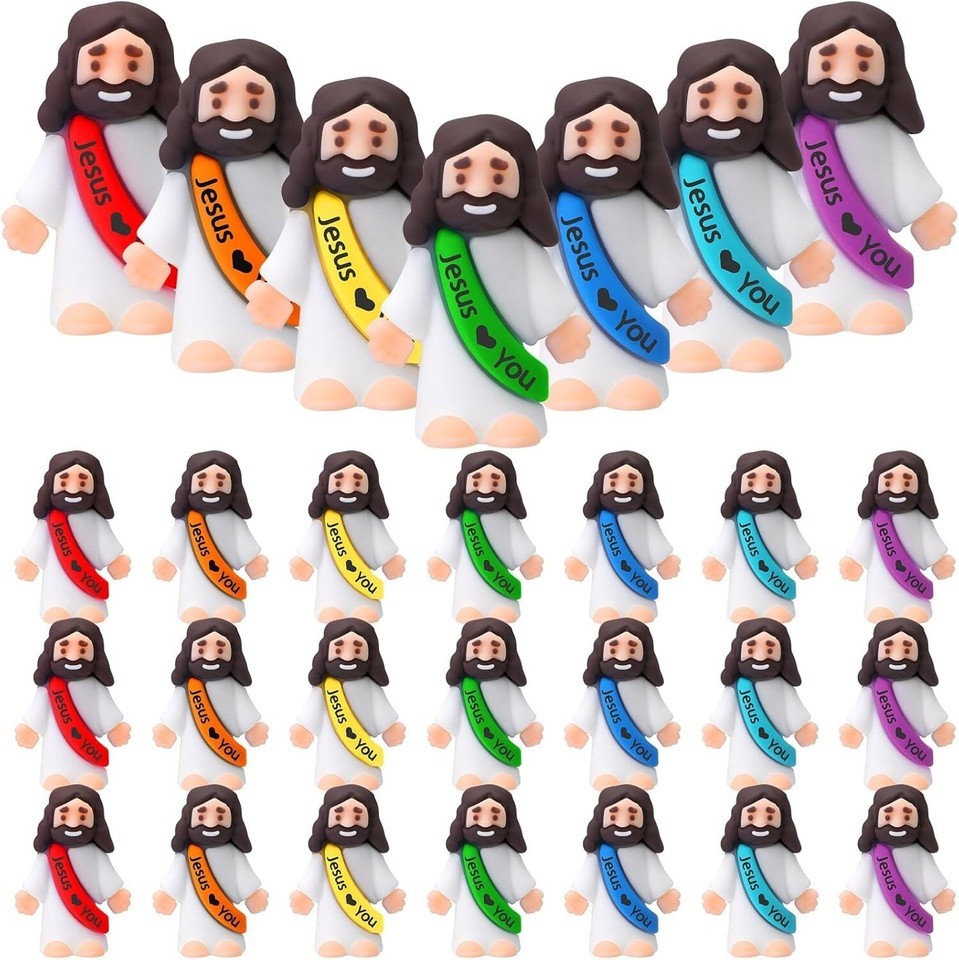 Vibrant Rainbow Jesus Figures – 25 Pcs Mini Toys for Fun Religious Activities