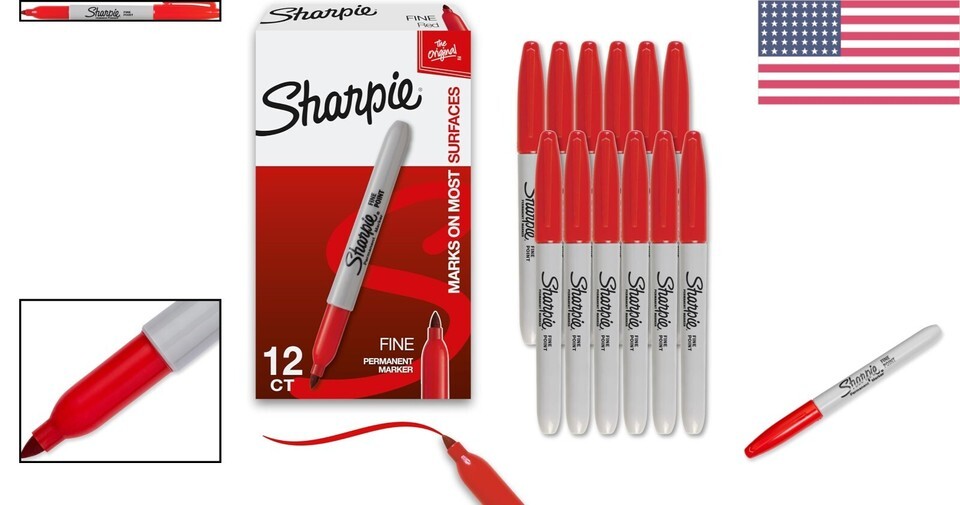 - Vibrant Red Fine Tip Permanent Markers, 12 Count - Quick Drying & Fade Resistant