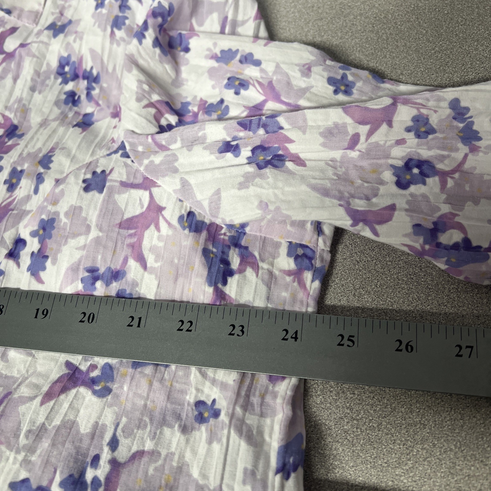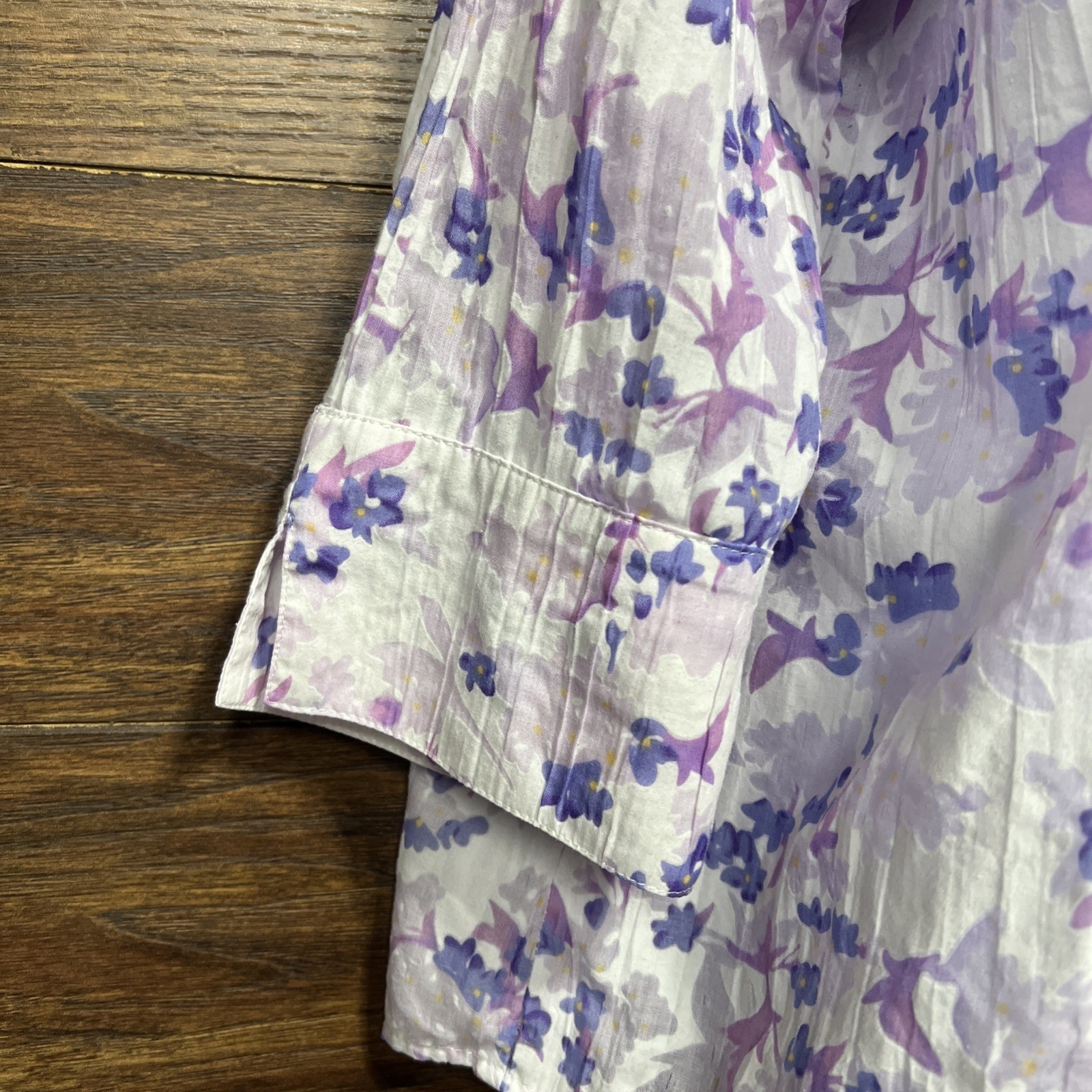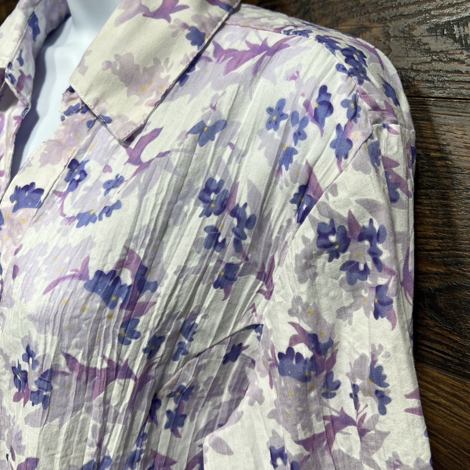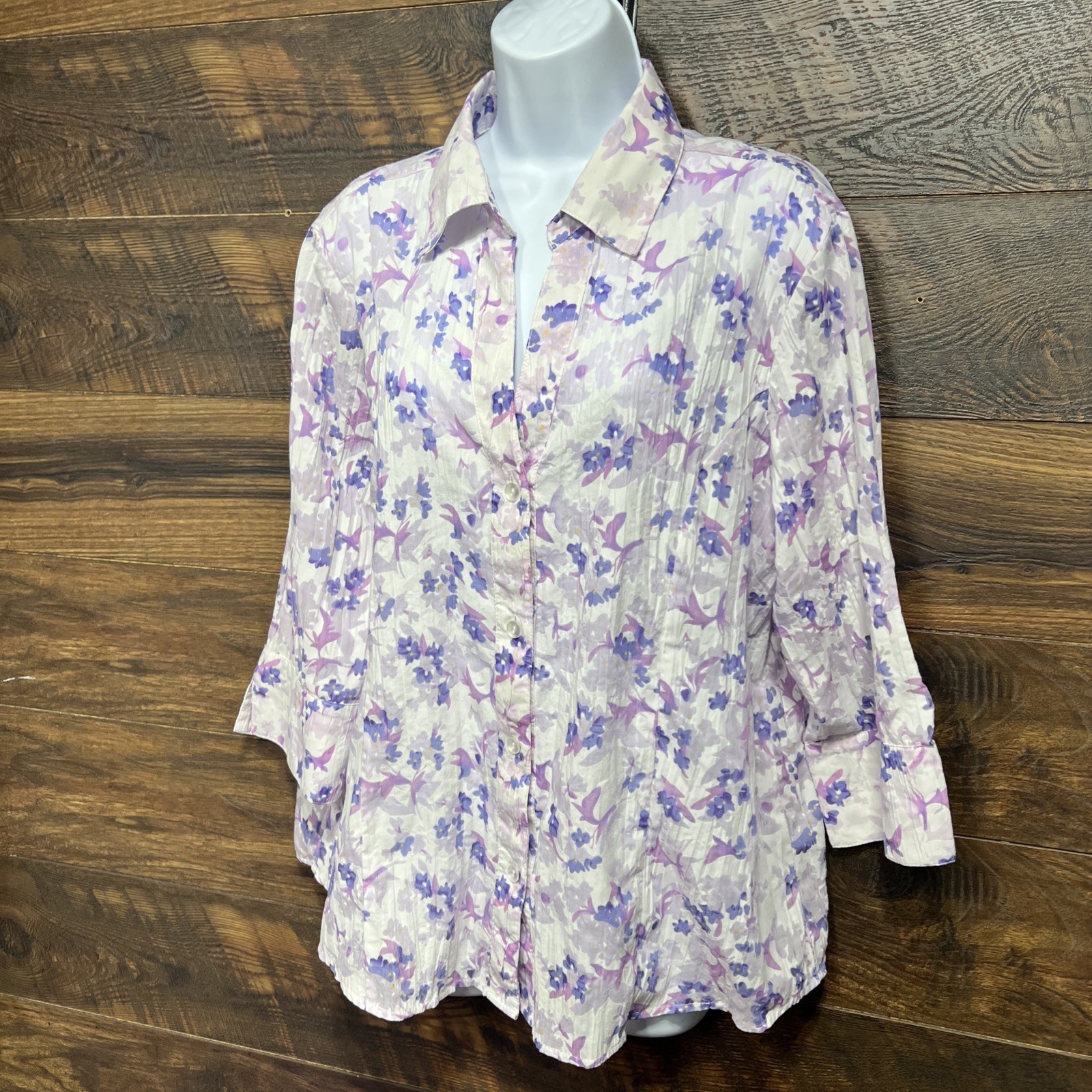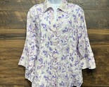 Vicki Wayne Shirt XL Tropical 3/4 Sleeve Top Blouse Buttoned Purple Floral Vacay