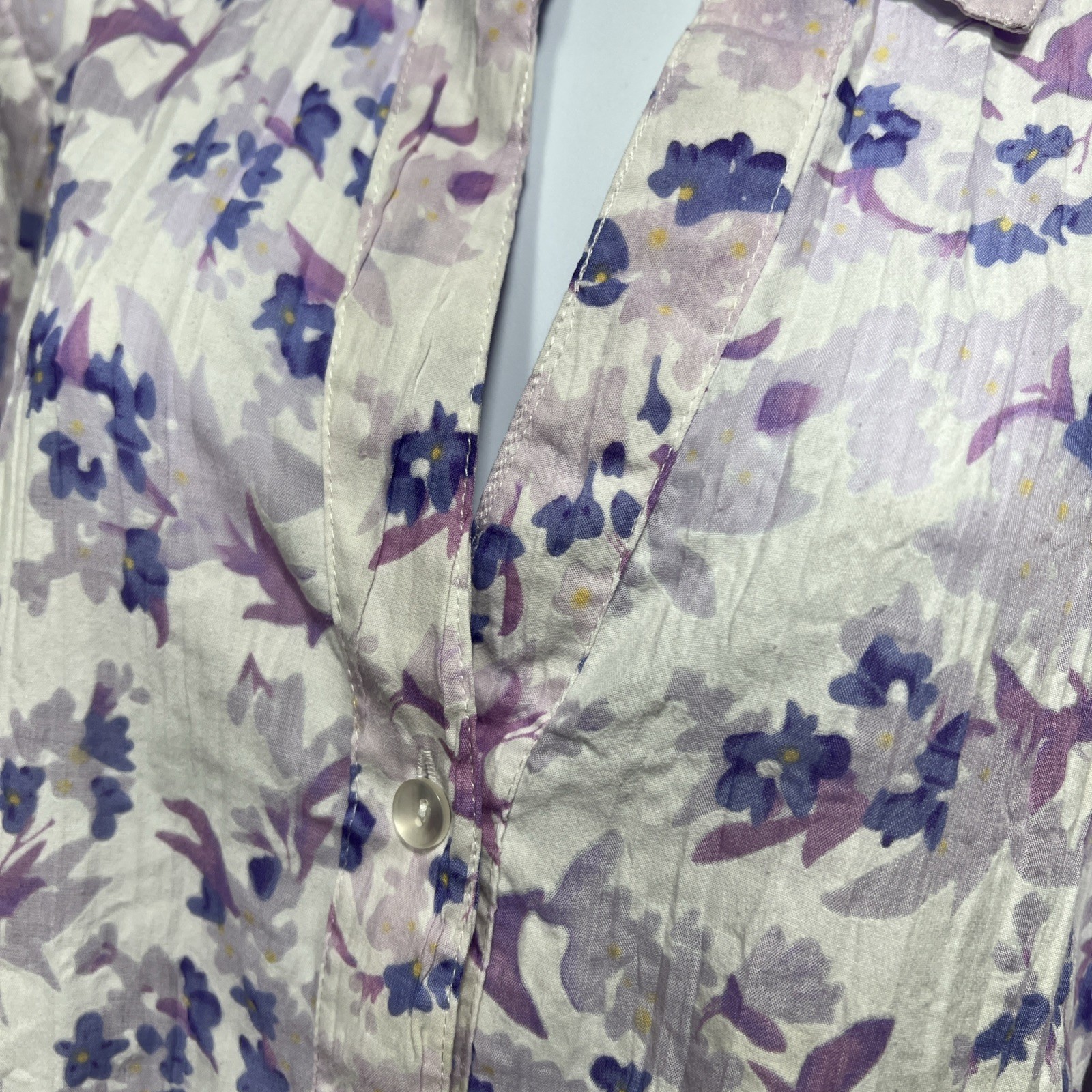 - Vicki Wayne Shirt XL Tropical 3/4 Sleeve Top Blouse Buttoned Purple Floral Vacay