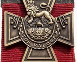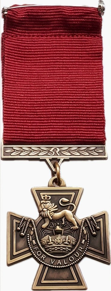 Esta es una reproduccion de posguerra de la estimada Cruz Victoria (VC), la mas alta condecoracion militar otorgada por su valor "frente al enemigo" a los miembros de las fuerzas armadas britanicas y de la Commonwealth. El diseño iconico de la medalla cuenta con una cruz maltesa de bronce con un leon de pie sobre la corona real, rodeado por el lema "POR VALOR". Introducido en 1856 por la reina Victoria durante la Guerra de Crimea, el VC original esta tradicionalmente fundido del bronce del cañon ruso capturado en Sebastopol, simbolizando la valentía bajo amenaza enemiga directa.