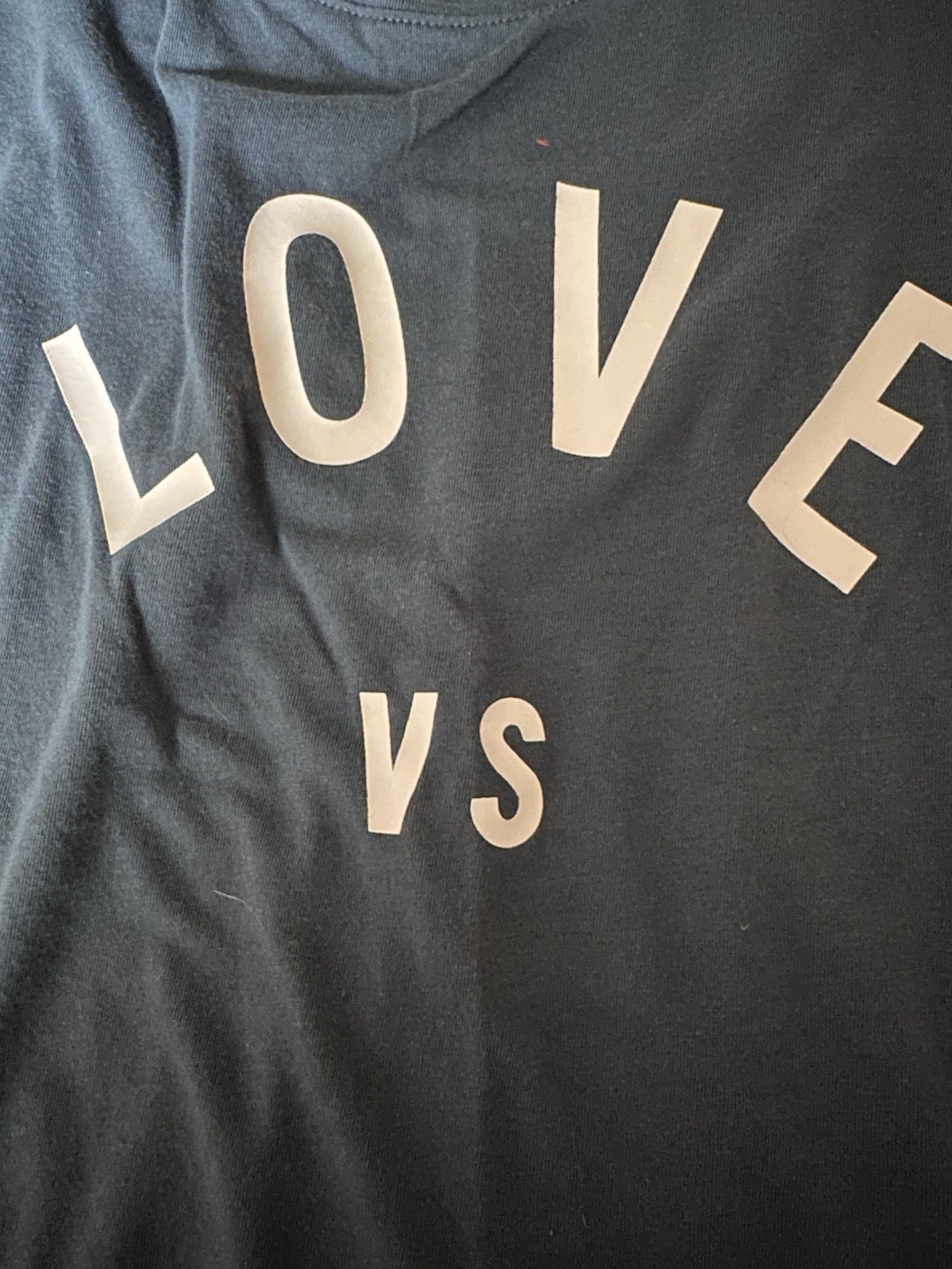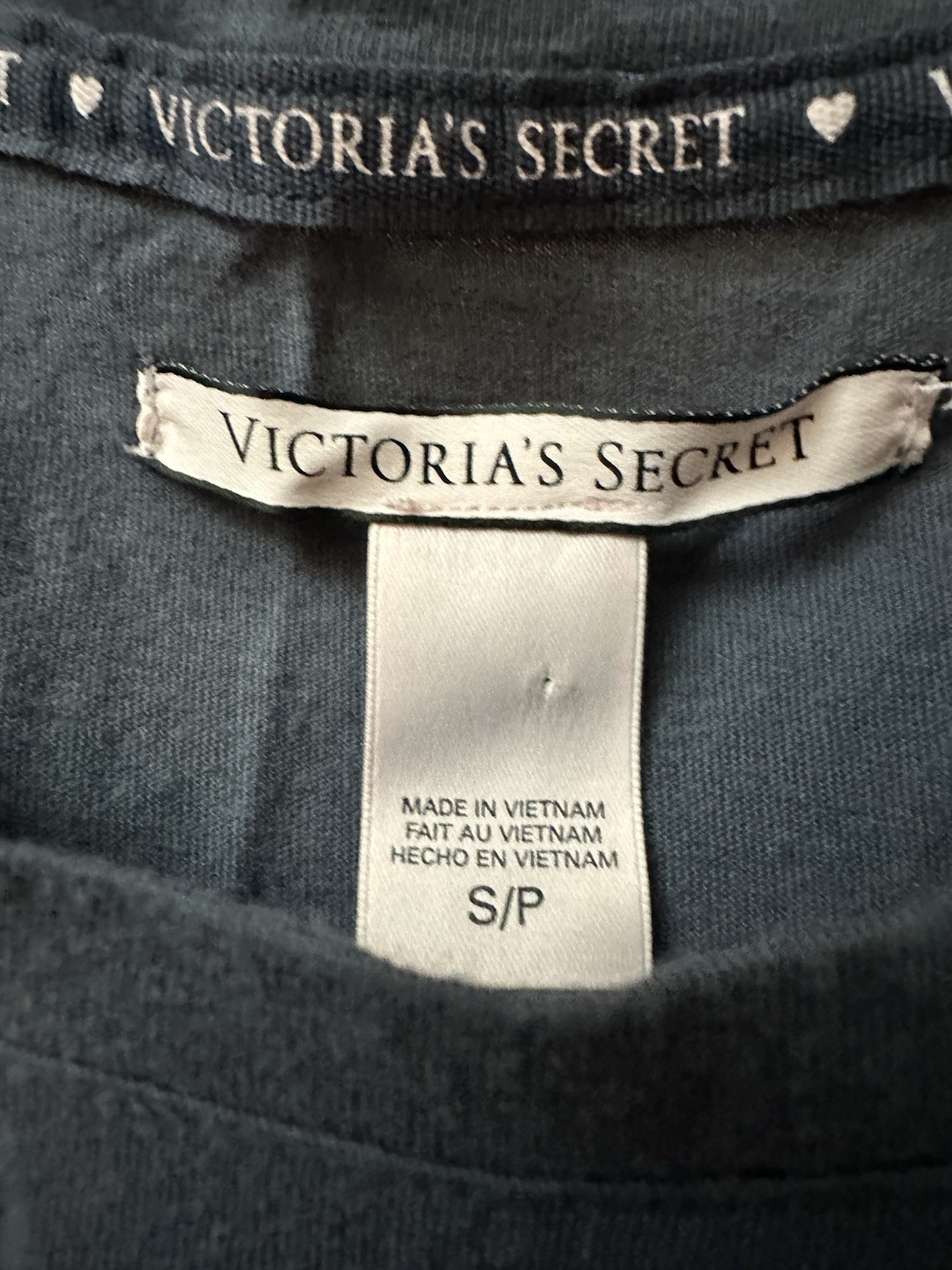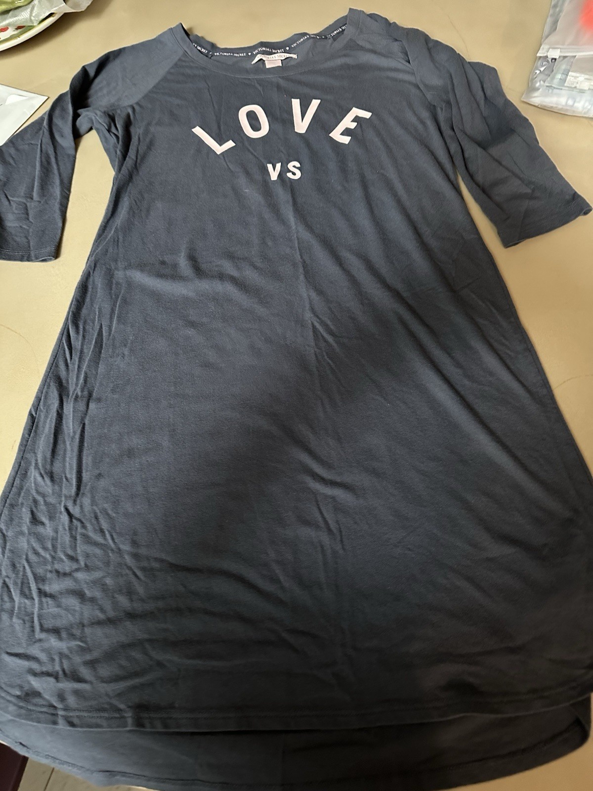 - VICTORIA SECRET LOVE SMALL P 3/4 SEEVE NIGHT TEE GREY PINK LETTERS PREOWNED