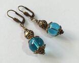 - Victorian Blue Glass Earrings: Bronze Filigree Boho Dangle Earrings