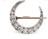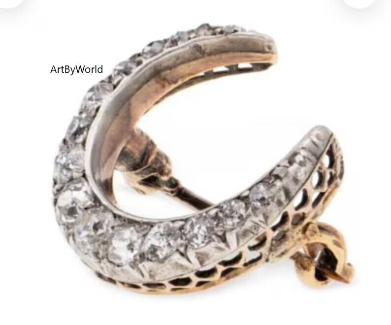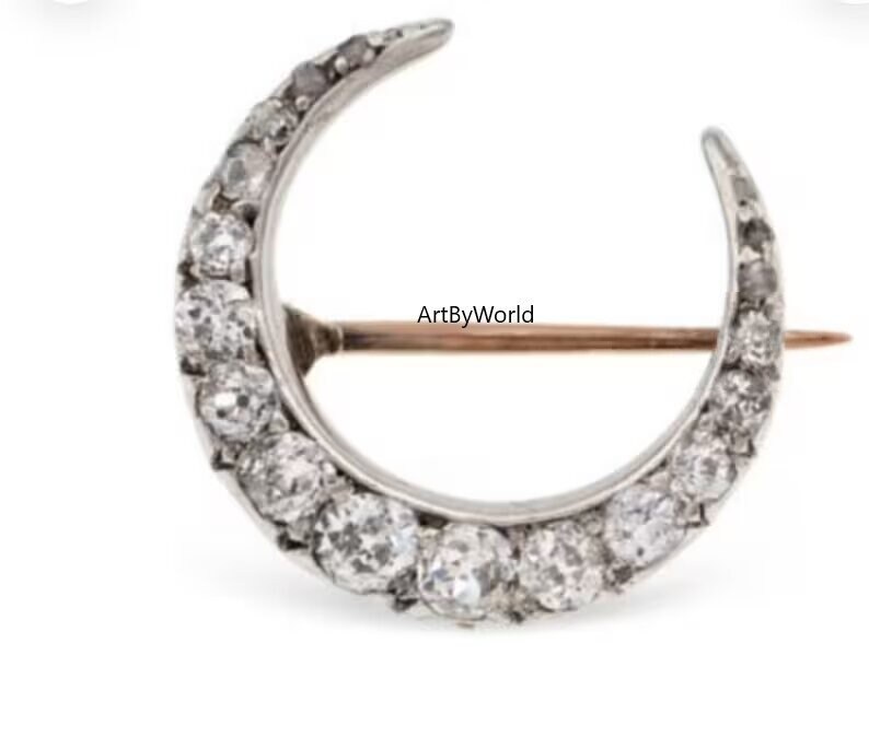 - Victorian Crescent Rose Cut Diamond Silver Brooch, Crescent Half Moon Brooch