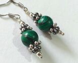 Amazingly beautiful Malachite earrings with silver-tone ornament beads. Victorian Malachite earrings . Silver-tone beautiful Boho earrings . Bohemian earrings . Victorian style silver-tone green Malachite gemstones dangle earrings with a beautiful ornamented silver-tone caps and plastic beads . Romantic Malachite earrings .